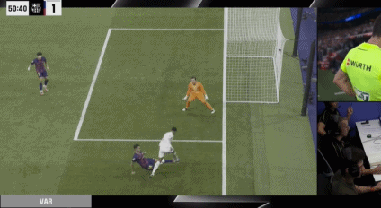 第45分钟,威尼修斯左路传中,居莱尔挑传,姆巴佩转身回敲,贝林厄姆跟上捅射,被什琴斯尼扑了一下,姆巴佩补射再进,不过越位在先。