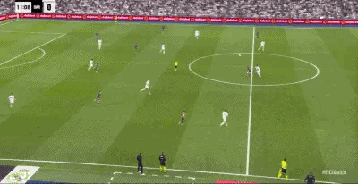 第12分钟,巴萨中场费尔明回传失误,姆巴佩不停球选择凌空抽射破门,皇马1-0领先;然而主裁判再一次收到了VAR的提醒,又一次最终取消了进球,原因是姆巴佩“越位”在先,而官方给出越位划线显示,姆巴佩的越位的确是毫厘之间。