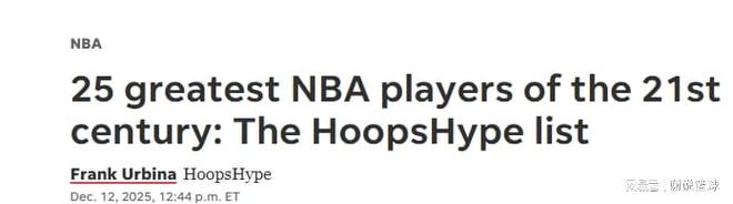 美媒评本世纪25大巨星:詹姆斯榜首库里第五,保罗哈登无缘前十